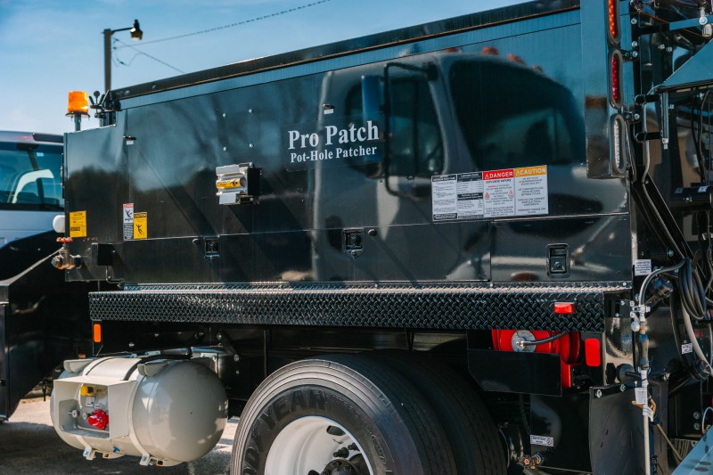 Fill your biggest potholes easily and efficiently with a dump body Pro-Patch asphalt patcher. Dump large quantities of hot or cold mix asphalt into prepared potholes to permanently prevent persistent erosion of your roadbed.